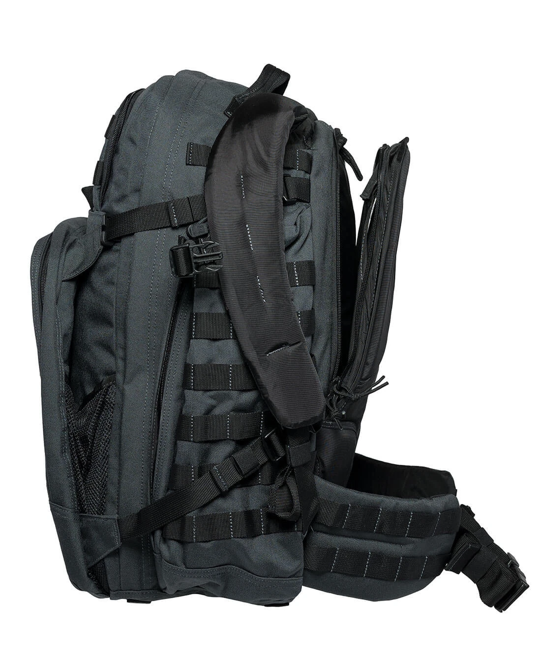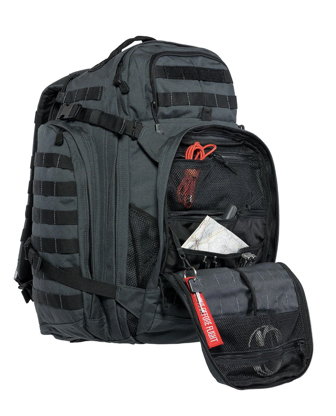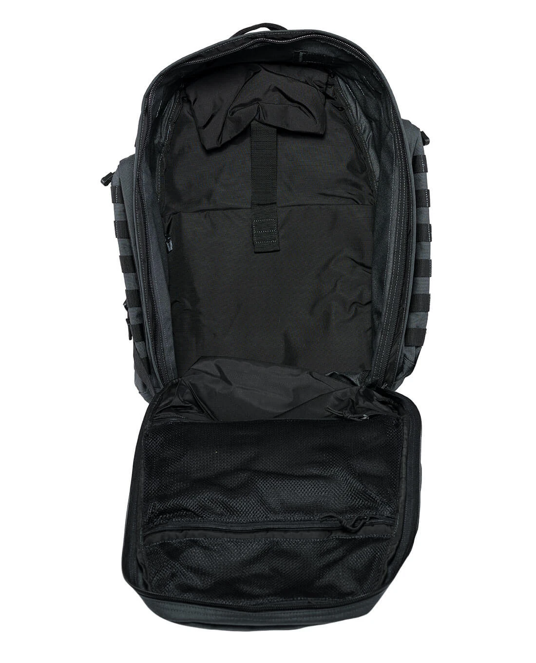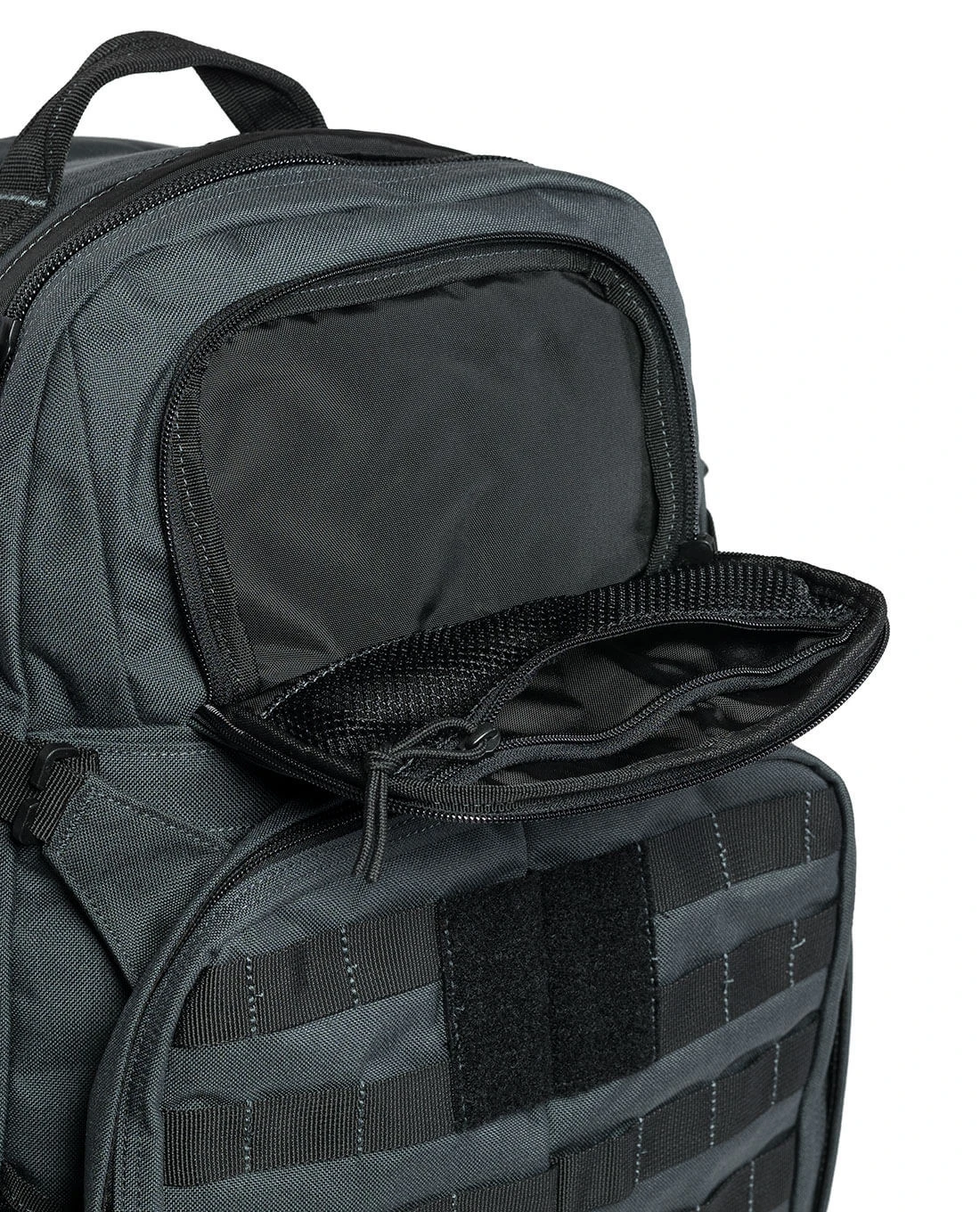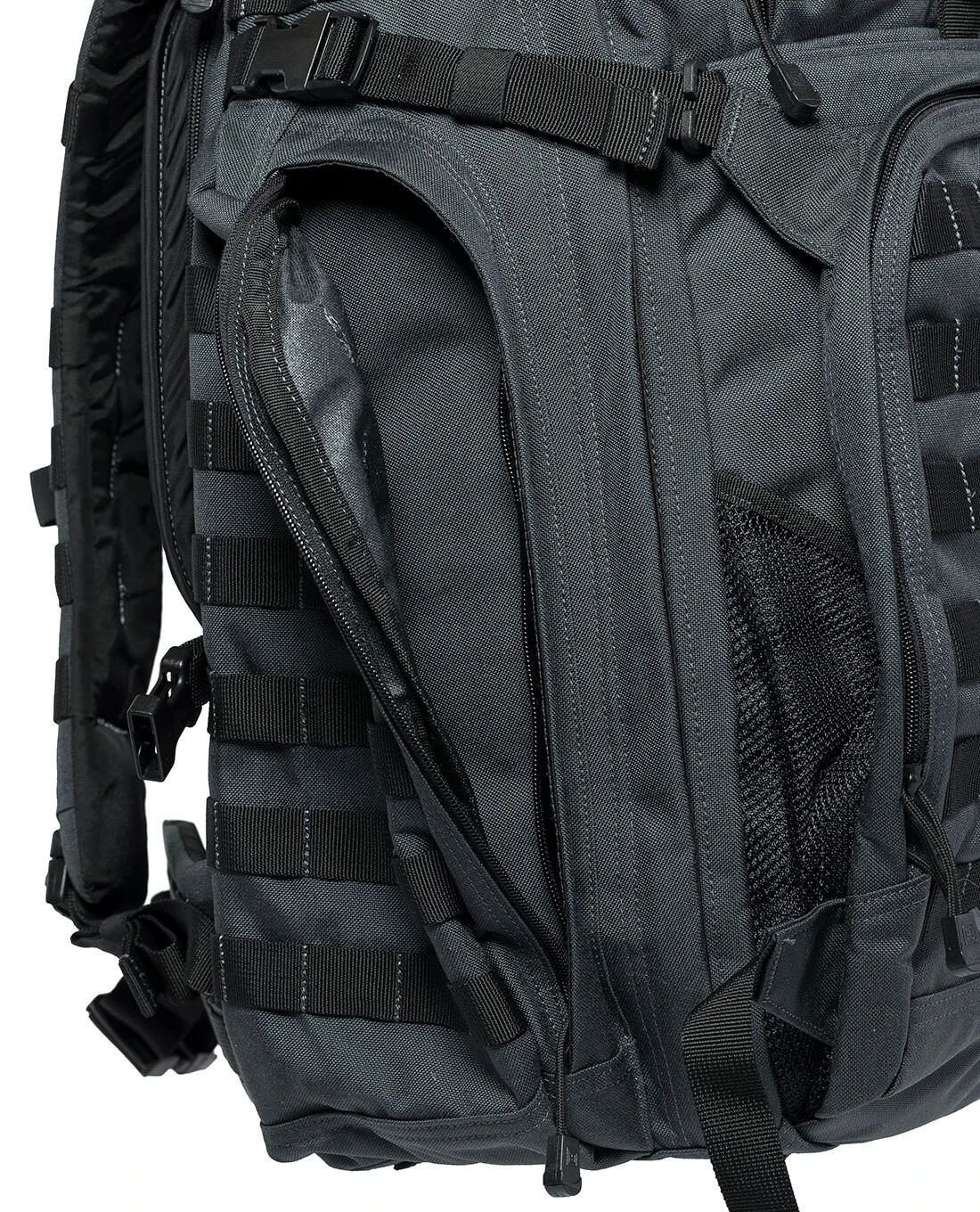 Das typische Centre-Line Design von 5.11 macht den Look des neuen Rush72 aus, der taktisch fokussiert ist und das auch zeigt: Mit einem umlaufenden M.O.L.L.E.-System sind die Kombinationsmöglichkeiten nahezu unbegrenzt. Sowohl das Haupt- und das Frontfach, als auch die Seitentaschen sind mit M.O.L.L.E.-Streifen ausgestattet und damit rundum ready für das Aufnehmen kleiner Tac Pouches oder Zubehörtaschen.