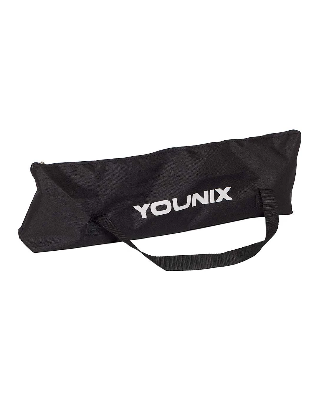 Die Younix Agility Ladder ist ein flaches Gerät aus Nylongurten und flachen Kunststoff-Seitenschienen. Die 11 gelben Sprossen sind vor jedem Untergrund gut sichtbar, sie sind mit einem Abstand von von 50 cm und auf einer Länge von 4,5 Meter angeordnet. Die Leiter wird mit einer Tragetasche geliefert, in die sie immer wieder schnell und easy eingepackt werden kann.