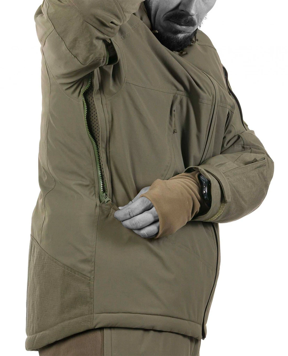 Die integrierten, leichtgängigen Vislon YKK-Reißverschlüsse in den Achselhöhlen können geöffnet werden, wenn es in der Jacke zu warm werden sollte. Die Reißverschlüsse lassen sich mit einer Hand öffnen und sind einschneller und unkomplizierter Weg, Wärme nach draußen abzugeben.