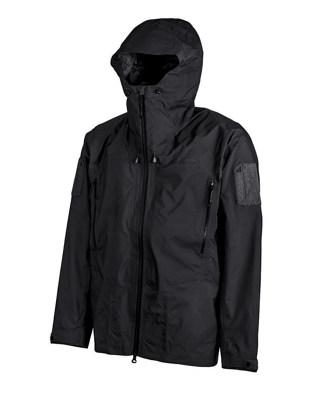 Die Schnittführung im Rückenbereich bietet uneingeschränkte Bewegungsfreiheit, während sich die Ärmelabschlüsse unkompliziert durch praktische Klettverschlüsse anpassen lassen. Dank Gummikordeln an Saum und Kapuze des GORE-TEX 3L Hoodys können diese individuell in ihrer Passform reguliert werden.