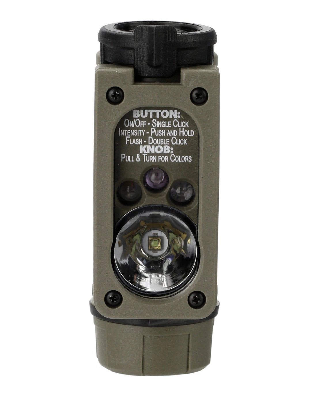 – Drehwahlschalter, den man herausziehen muss, um ihn zu drehen, verhindert versehentliche Änderungen des Betriebsmodus und ermöglicht die Auswahl der LED-Farbe