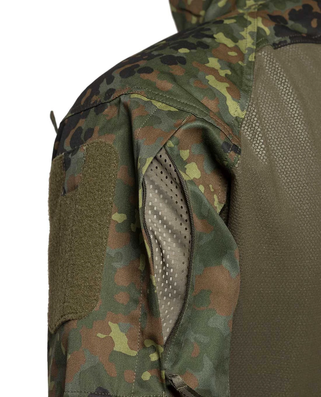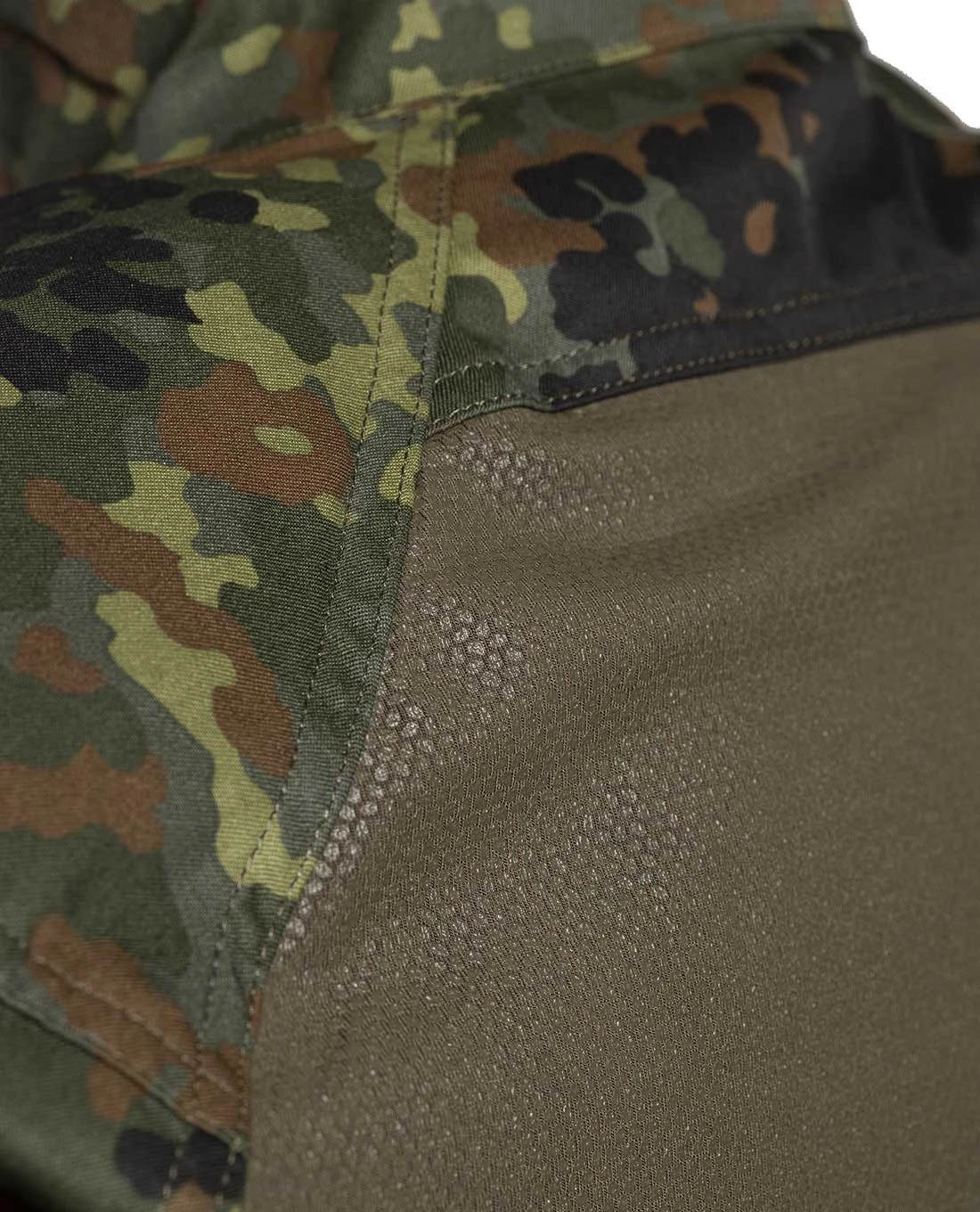Der revolutionäre Lizard/Skin Torso-Stoff basiert auf einem Lyocell/Polyamid-Strickgewebe und wurde mit leistungsstarken Keramikpunkten verstärkt. Neben maximalem Schutz vor Abrieb beim Tragen von Westen und schweren Plattenträgern bietet dieses Material fortschrittliche No-Melt/No-Drip Eigenschaften und besticht durch optimalen Komfort, außergewöhnliche Atmungsaktivität und eine schnelle Trocknung.