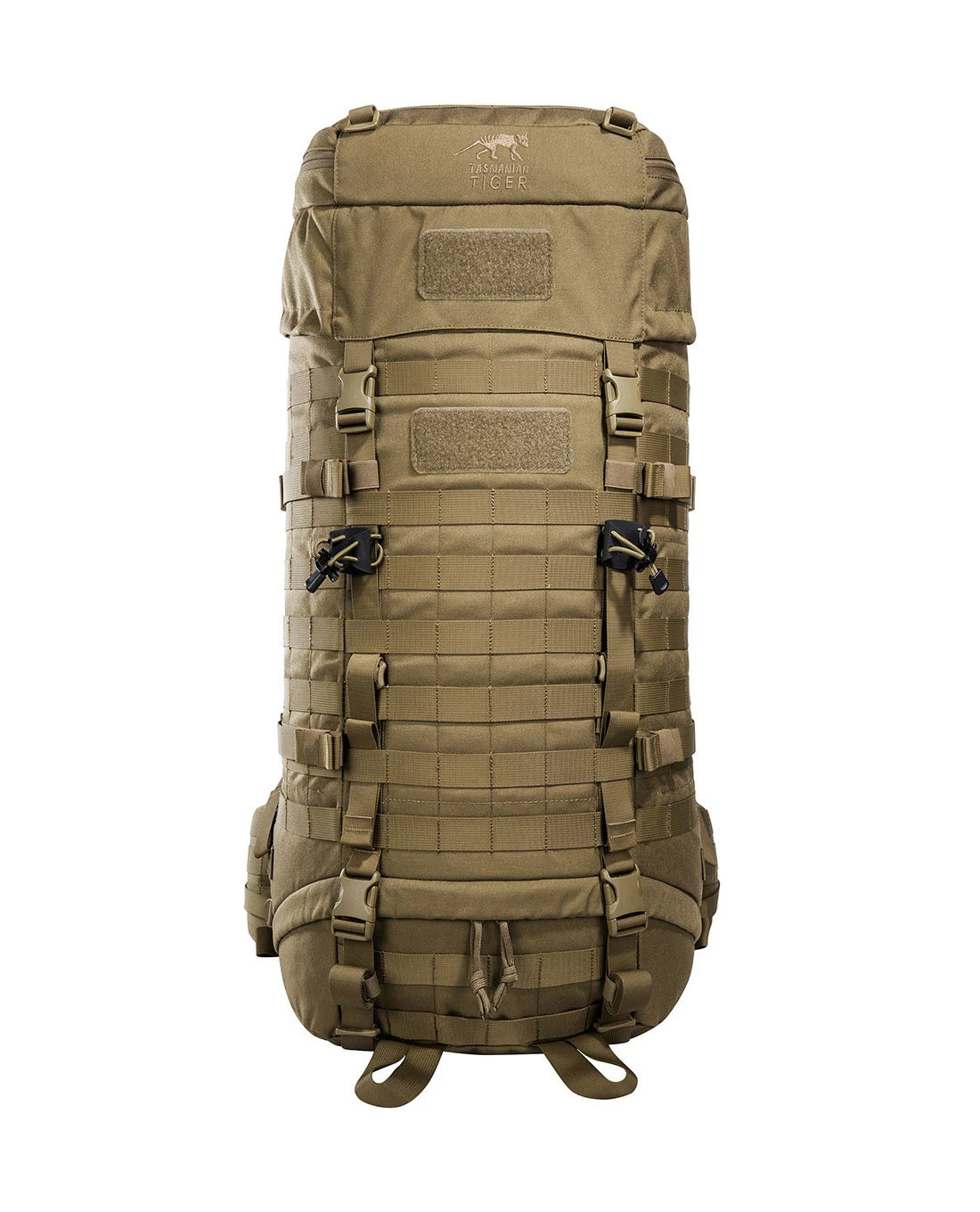 Um den Giganten in voller Beladung stabil und leistungsfähig transportieren zu können, kommt beim Base Pack das Tasmanian Tiger V2 Plus-Tragesystem zum Einsatz, das aufgrund seines hohen Ansatzpunktes eine große Spanne an Einstellungsmöglichkeiten der Rückenlänge hat. Es leitet die Last auf den Hüftgurt ab, der sich aus zwei konisch geschnittenen, gepolsterten Hüftflügeln zusammensetzt. Der Hüftgurt kann abgenommen und dank des umfänglichen MO.L.L.E.System auf der Rückseite als selbständiger Warrior Belt benutzt werden – in dem Fall lässt sich der Base Carrier selbst mit Plattenträger gut transportieren.