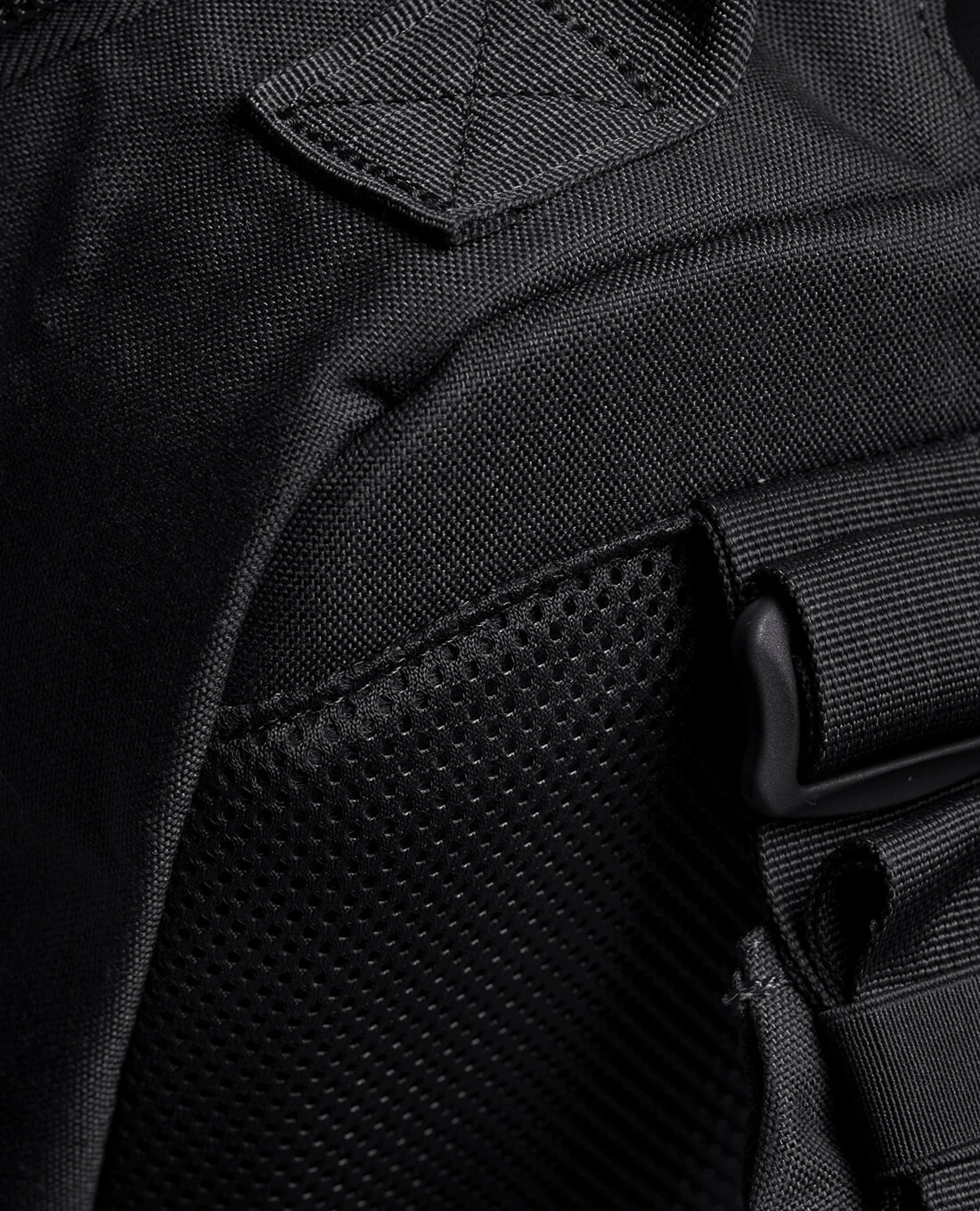 Die gleiche Aufgabe hat das Schultertragesystem, denn auch die beiden Schultergurte sind anatomisch geformt und gepolstert. Sie können außerdem in der Länge verstellt werden, so dass der Rucksack problemlos auch über einer voll beladenen Combat Weste oder dicker Kleidung getragen werden kann, ohne die Mobilität einzuschränken oder Druckstellen zu erzeugen. Gerade bei einer schweren Beladung des Rucksacks können die gepolsterten Hüftflossen dazu dienen, das Gewicht abzuleiten und von den Schultern weg auf die Hüften zu übertragen. Wer den Hüftgurt nicht braucht oder wo er in Kombination mit einem Gürtel oder einer Weste stört, kann er einfach abgenommen werden. Wird er benutzt, ist das M.O.L.L.E. System auf der Oberfläche sowie die beiden Reißverschlusstaschen jedoch durchaus sinnvoll zu verwenden.