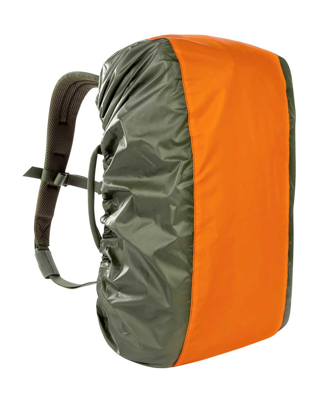 Im Bodenfach ist eine zweiseitig verwendbare Regenhülle verstaut, die auf einer Seite mit Streifen in Warn-Orange versehen ist. Außerdem ist ein Tac Marker integriert.
