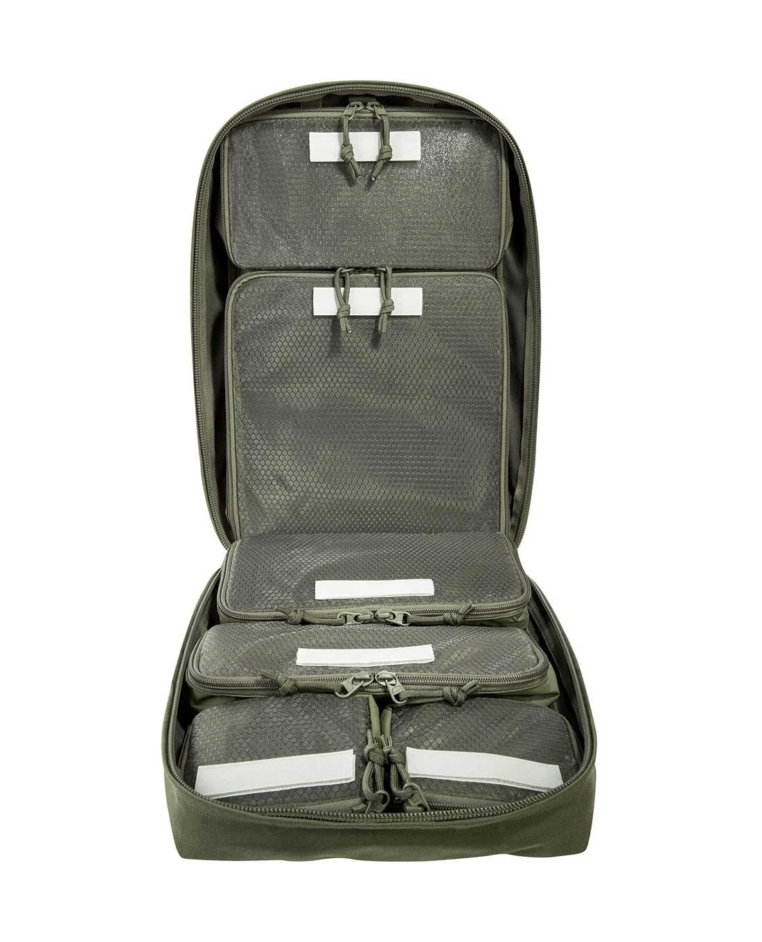 Das TT Survival Pack wird aus robustem Cordura 500 den gefertigt und fügt sich damit in die lange Reihe der getestet und bewährten TT Rucksäcke in Multicam ein. Ein langer Reißverschluss ermöglicht es, das das Hauptfach vollständig aufzuklappen und damit alle Inhalte gut zu erreichen. Im Inneren sind sechs Taschen mit durchsichtigem Deckel angebracht: Hier finden EDC und Medikamente in unterschiedlich großen Taschen zwischen 0,5 Liter und 6 Liter Volumen Platz. Zwei der Taschen können herausgenommen werden.