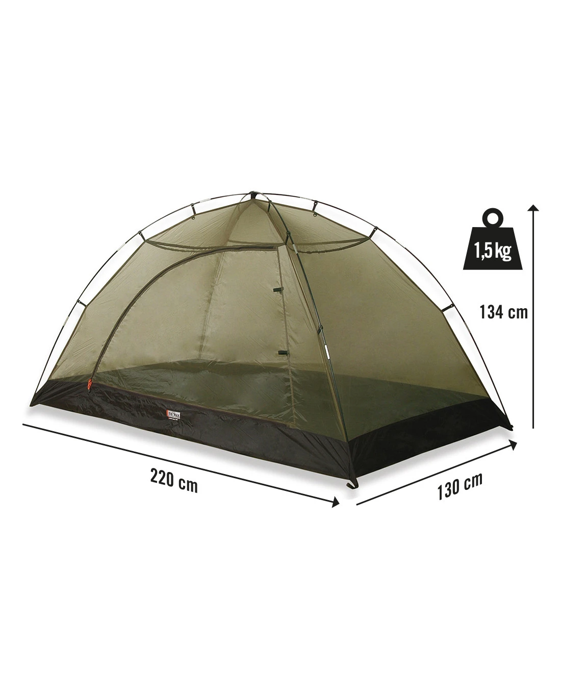 Der Double Moskito Dome eignet sich ebenfalls hervorragend als Vorratszelt und verfügt über einen aufrollbaren Zelteingang und Ösen am Zelthimmel, die zur Befestigung einer Wäscheleine genutzt werden können.