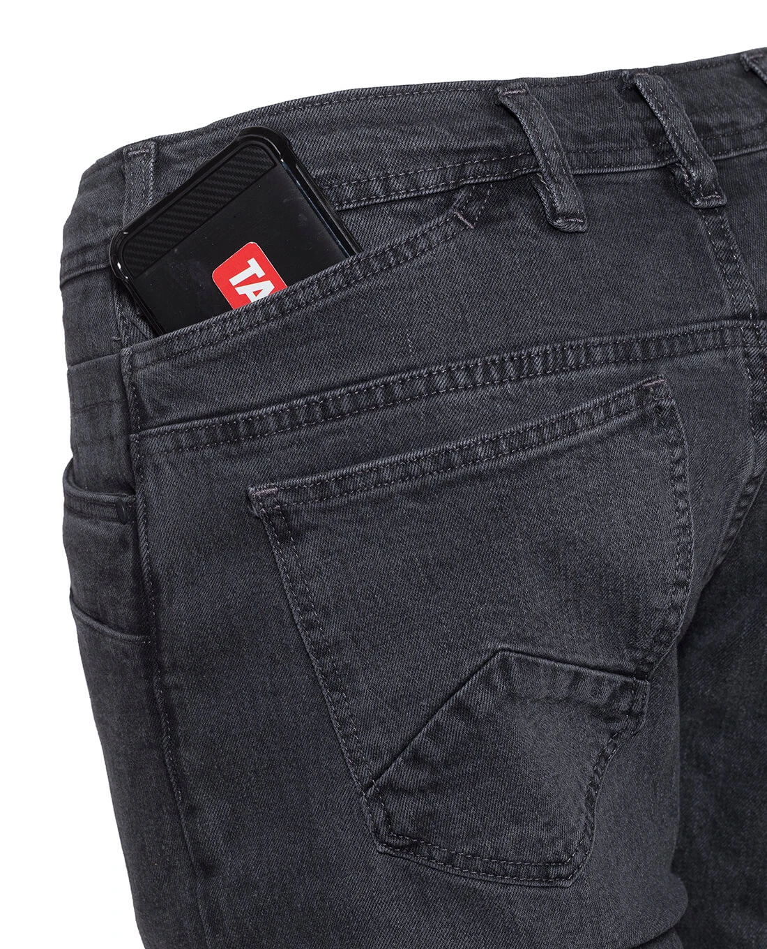 Höchste Fertigungsstandards, besonders bei Färbung und Waschung, garantieren dass das zur Anwendung kommende Material vollständig unangetastet bleibt und so kompromisslose Langlebigkeit verspricht. Die The M.U.D. Elastane in Urban Grey verfügt über eine Knopfleiste mit 4 geprägten Knöpfen im Logodesign und 6 Jeansnieten mit geprägten Sargnägeln. Das klassische 5-Pockets-Design der M.U.D. wird durch 8 weitere verdeckte Taschen in verschiedenen Konfigurationen ergänzt. 2 Einschubtaschen bieten extra verstärkte Taschensäume, die selbst unter größter Belastung stärkster Taschenmesserklammern nicht verschleißen und bieten bei dieser speziellen Neuauflage der M.U.D. integrierte Münztaschen, die in Tiefe und Form problemlos nahezu jeden Folder und jedes Kurzwaffenmagazin aufnehmen können.