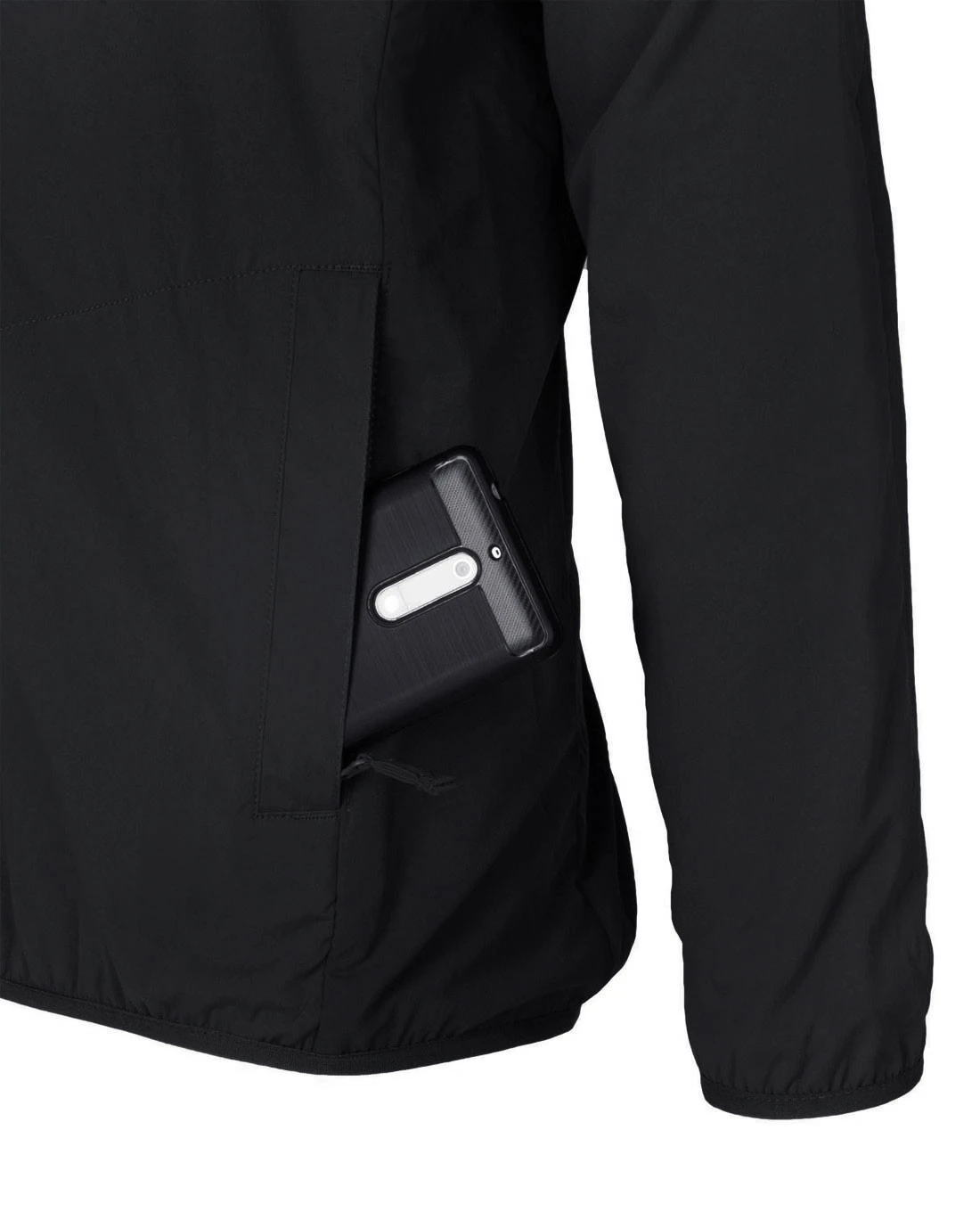 - Elastische Bänder am Kapuzenrand, an den Ärmelbündchen und an der Unterseite der Jacke