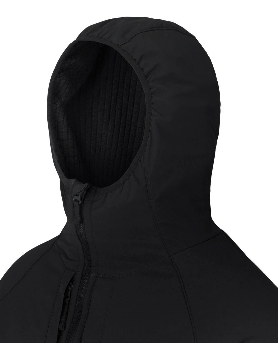 - Angepasste Kapuze mit elastischem Band am Rand