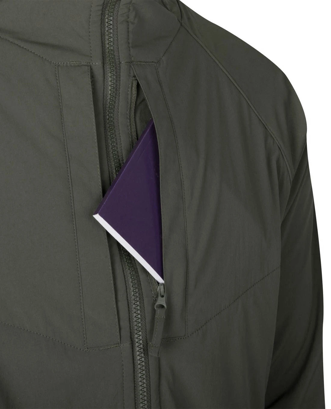 - Vier Reißverschlusstaschen: zwei unten auf der Vorderseite, zwei auf der Brust