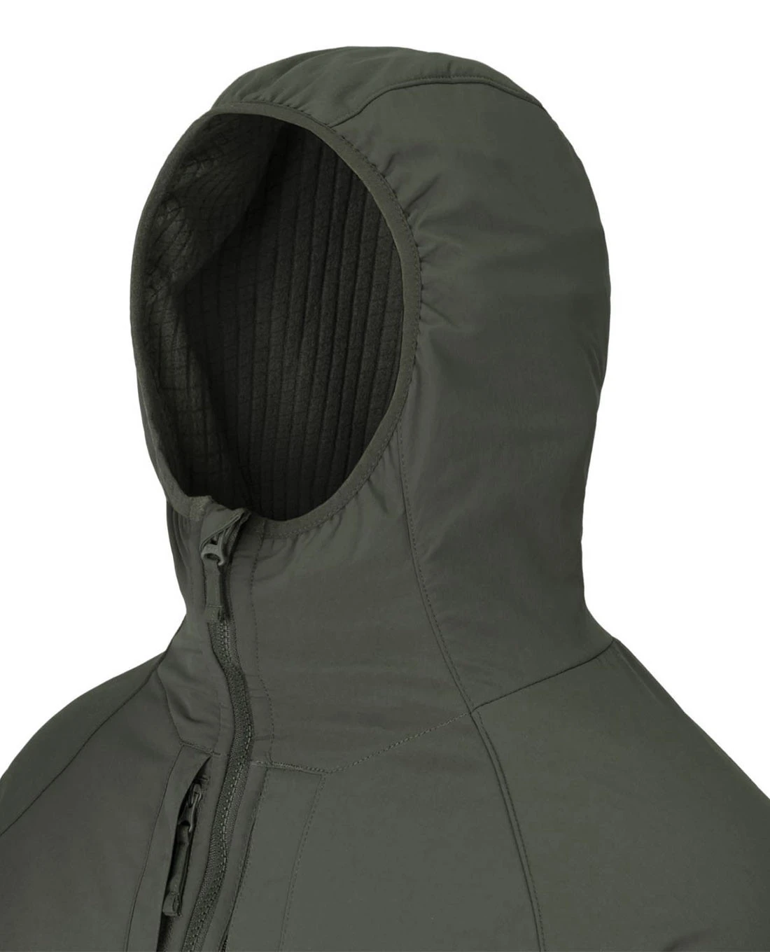 - Angepasste Kapuze mit elastischem Band am Rand