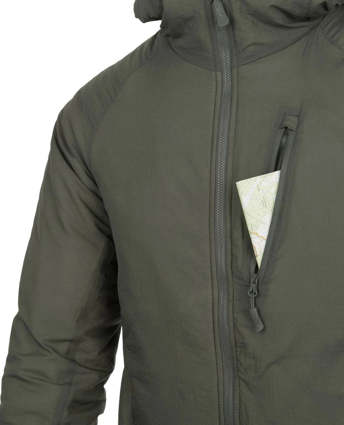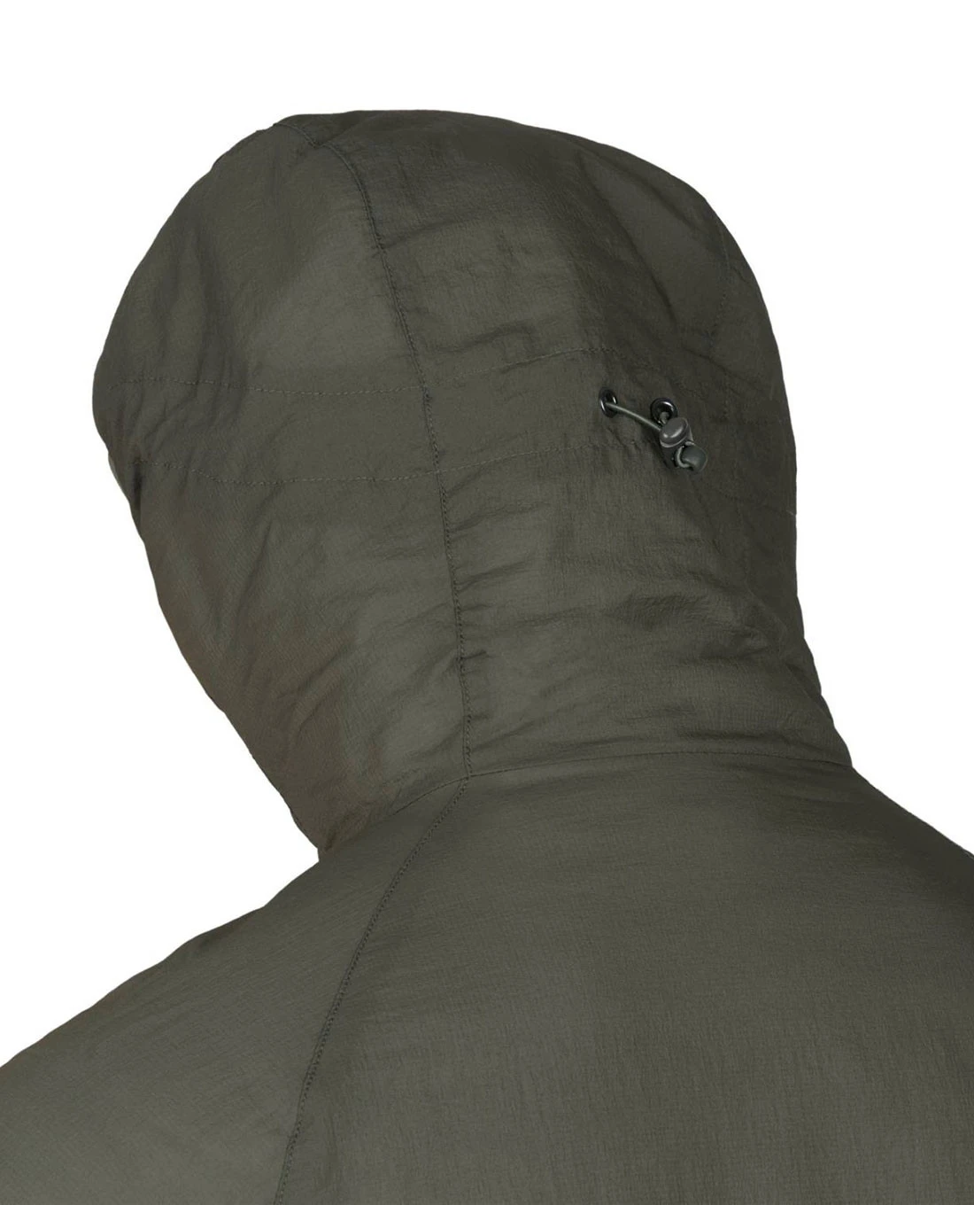Der Gewinner beim Wolfound Hoodie ist die Climashield Apex-Wattierung (67 g/m2), die für eine perfekte Isolation bei gleichzeitig geringem Gewicht sorgt. In Kombination mit einer Außenschicht aus WindPack-Nylon sei Wind, Kälte und Nässe hier schonmal getrotzt, selbst wenn keine Windjacke darüber getragen wird. Weil die Jacke sich gut für lange Wanderungen eignet und ein bisschen Bewegungsfreiheit ohnehin nicht schadet, hat Helikon-Tex die Achseln mit einem VersaStretch-Gewebe ergänzt, dass mehr Mobilität verspricht.